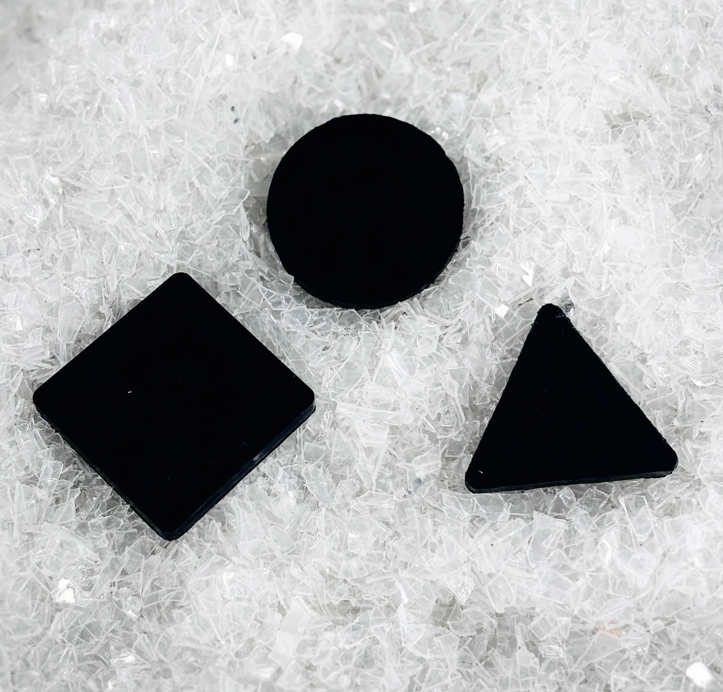 A pair of earrings created with 100% recycled PLA charms by the Precious Plastic Monash team. Earrings can be single or double charmed in a range of colour and shape options.